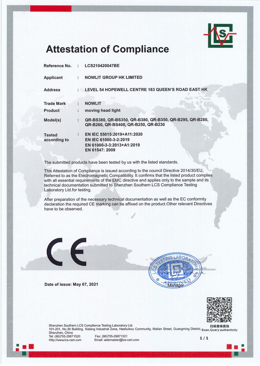 LED Moving Head Light-CE Certificate