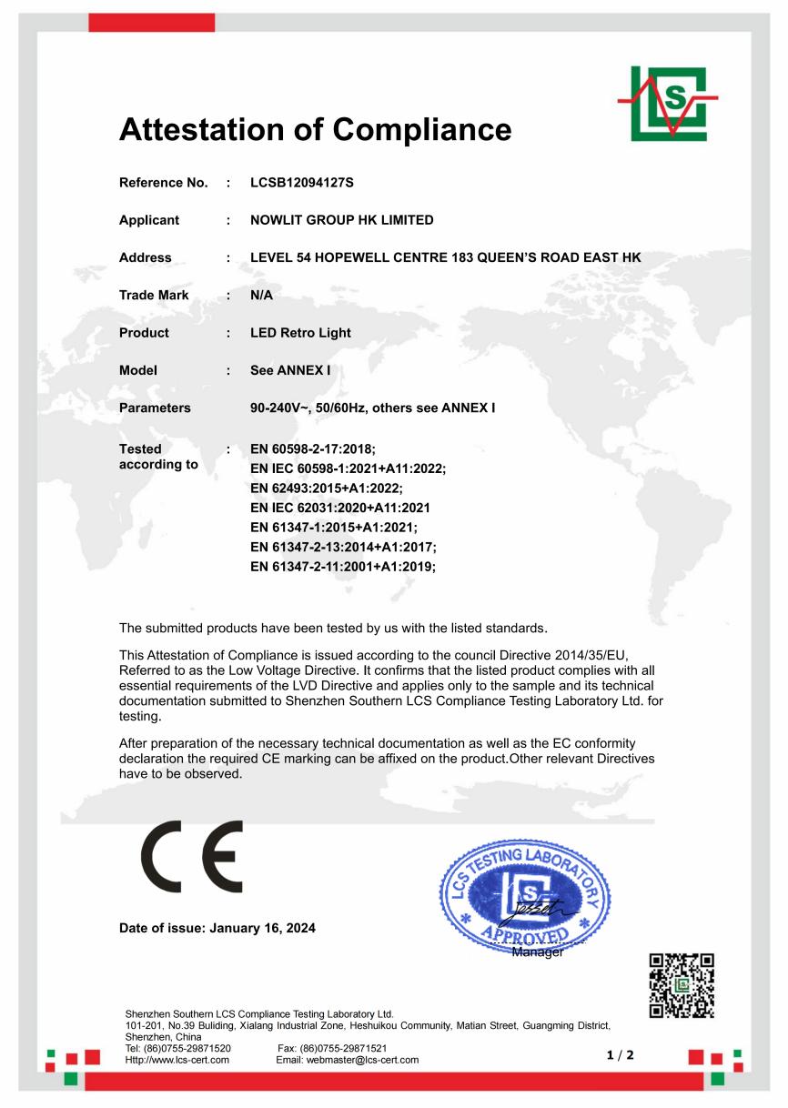 LED Retro Light - CE Certificate