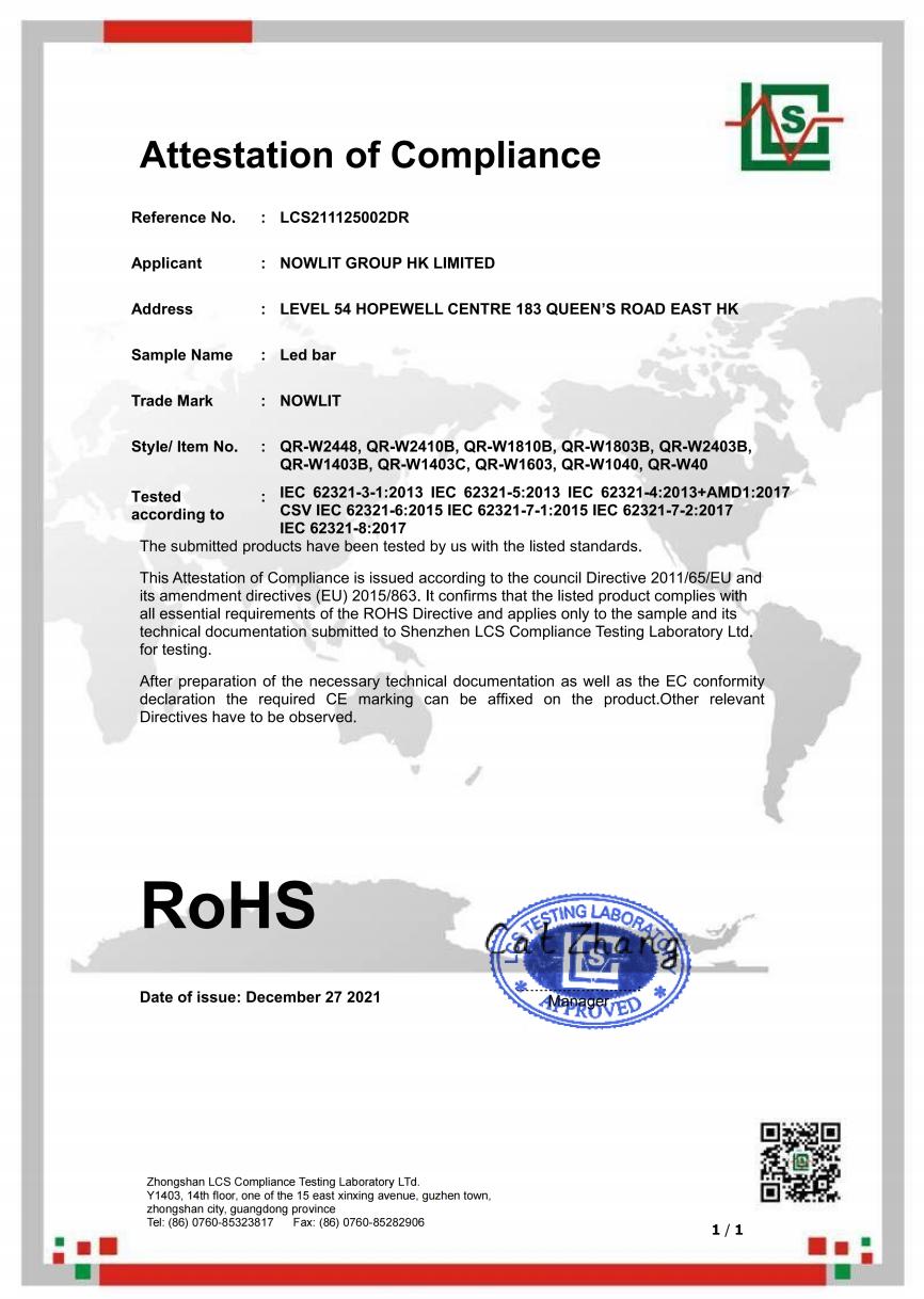 LED Bar Light - RoHS Certificate